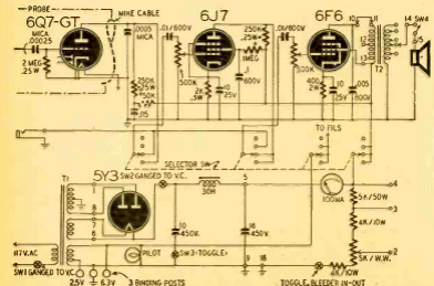 This utility bench circuit was found in an American magazine from 1946. It combines the two functions in one useful bench circuit. Note that it uses transformer in the source, important for the safety of use.