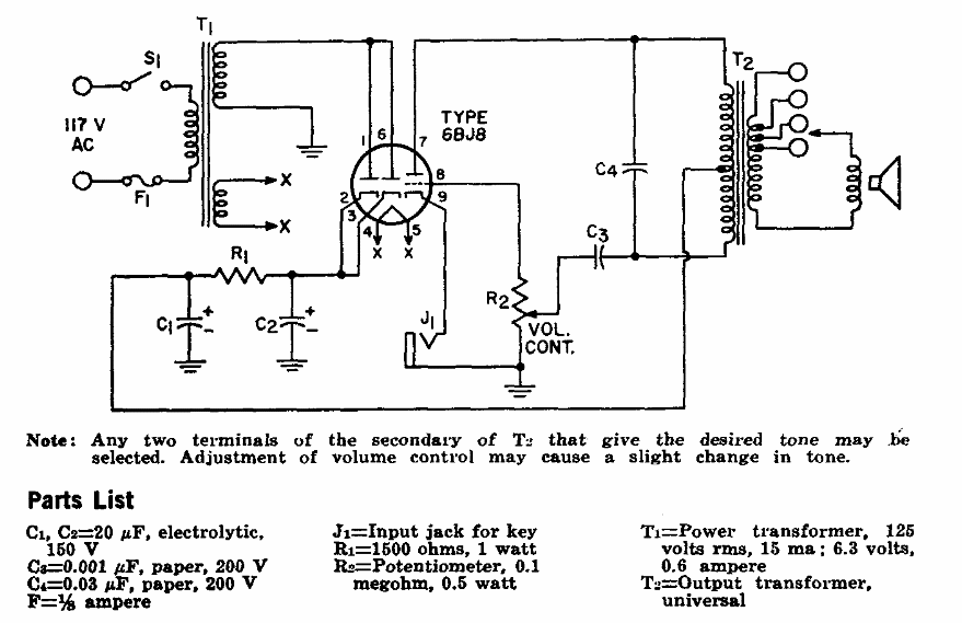 Found in the 1975 RCA tube manual, this circuit appears elsewhere in this section. The circuit uses contemporary components and is powered by the power grid.