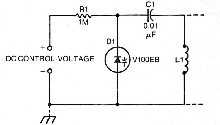 This configuration shows the simple way to use a varicap diode to tune an LC circuit. Capacitor C1 must be ceramic and the control voltage varies according to the characteristics of the varicap used. Common varicaps are those of the BB series like the BB809.