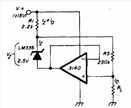 We found this circuit in a documentation for 1977 American radio amateurs. The LM336 integrated circuit is a regulator from National with a reference voltage of 2.5 V. The maximum input voltage is 15 V.