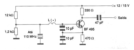 With the circuit shown in the figure it is possible to generate signals up to a frequency of 110 MHz. The L coil has its value depending on the frequency range in which the oscillator will operate, according to the following table: