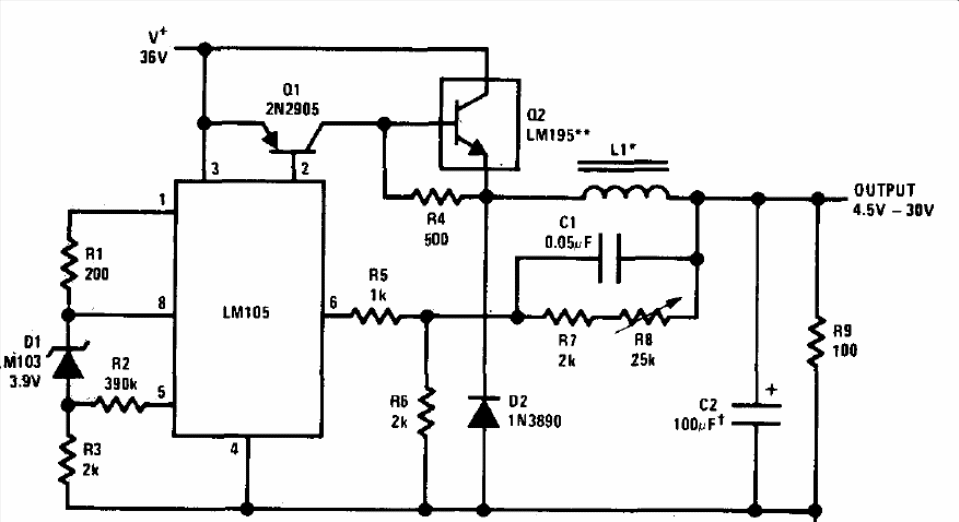 This switching source was obtained in a 1976 National Semiconductor manual. For the indicated current, 3 LM185 devices must be connected in parallel. For smaller chains less can be used. Transistor Q1 can be a BD136. The shock consists of 60 turns of wire 26 in a ferrite core.