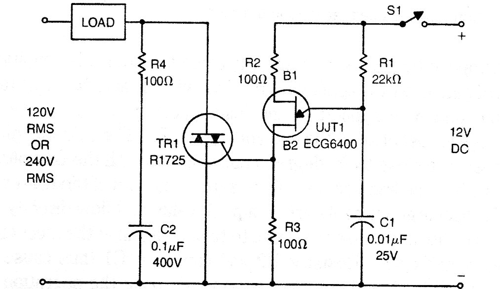 One touch on S1 and the circuit turns on. With a tap on S2 it turns off. This is the purpose of this circuit found in a technical documentation on SCRs and Triacs from the 70s. The circuit can be implemented with Triacs of the TIC series, operating on the 110V or 220V network. The Triac must be equipped with a heat radiator.