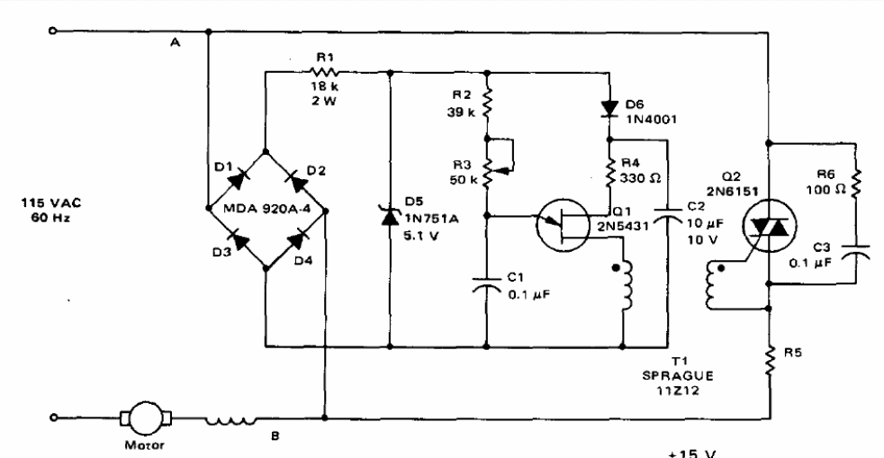 This circuit for the induction motor was found in Motorola's Circuit Applications for the Triac of 1971. The Triac must match the motor and the bridge diodes can be 1N4004. The transformer is pulse type with a 1 to 1 turn ratio.