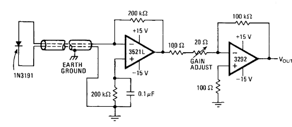 This circuit is from a documentation for engineers from 1977. The circuit uses a large surface diode or even a common diode as a sensor, detecting radiation levels from 10 to 1000 rads. The resistors can be approximated to standard current values and the operational amplifiers can be equivalent as the CA3140.