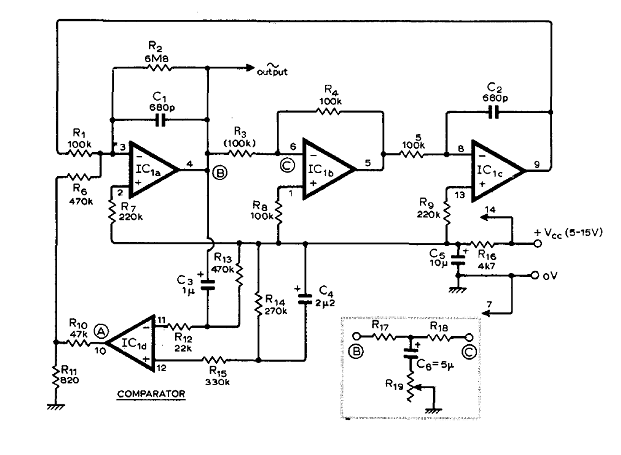 Of course, other frequencies can be generated by changing the components. The circuit generates a sinusoidal signal, having been found in a 1975 documentation.