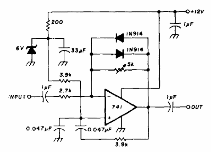 This filter was found in a publication for radio amateurs in 1977. The components can be changed for operation on other frequencies and the power supply can be from 9 to 15 V. Other operational amplifiers can be used.