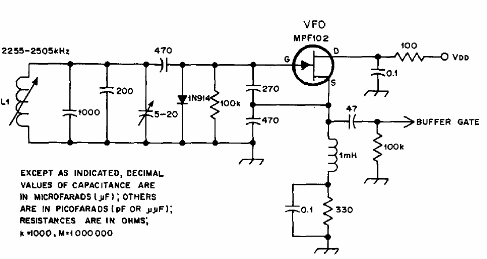 This circuit was found in a documentation for radio amateurs from 1978. The resonant circuit determines the frequency range and can be changed. The 160 m radio amateurs range operates at a frequency of around 1.8 MHz. The circuit can be used as the basis for a higher power transmitter.