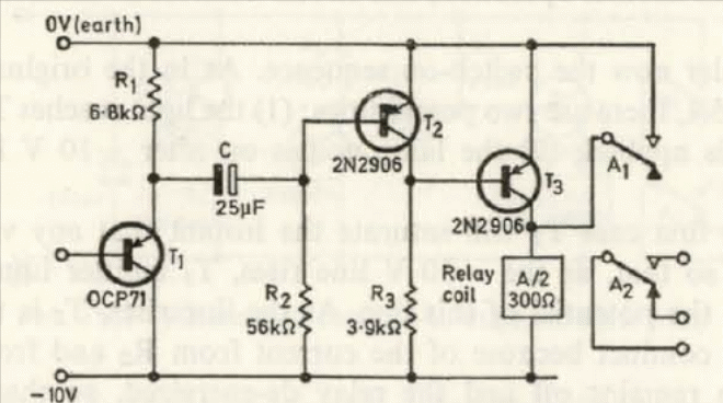 This sensitive photo-relay can be mounted with modern transistors such as BC558 and with the inversion of power with NPN transistors such as BC547. The power can also be changed to 12 V to allow operation with relays for this voltage. The phototransistor can be of any type.