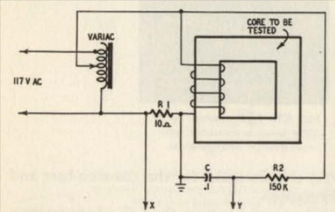 We found this circuit in an old oscilloscope publication. With it, it is possible to observe the B / H curve (hysteresis) of an inductor in a common oscilloscope.