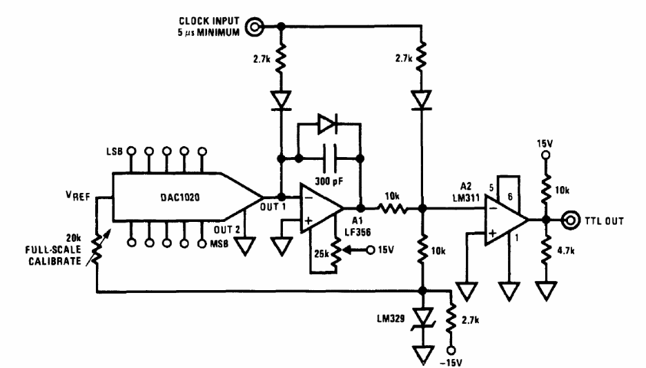 The circuit presented was found in the Linear Applications Handbook of the National Semiconductor of 1994. It is based on a DAC1020 and operational not common today.