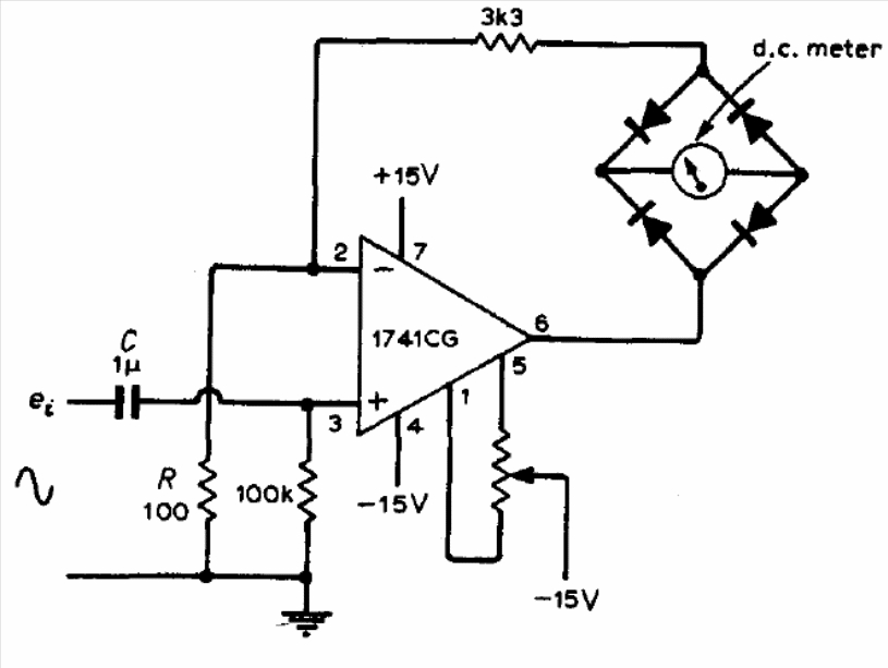 We found this circuit in a 1973 documentation. The null adjustment trimpot is 10k. The circuit can be powered by symmetrical sources from 9 V. The diodes on the bridge can be 1N4148.