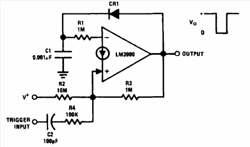 The circuit presented is suggested by National Semiconductor in its Linear Applications Handbook. The circuit uses an LM3900, operational transconductance amplifier. The diode is a general-purpose type.