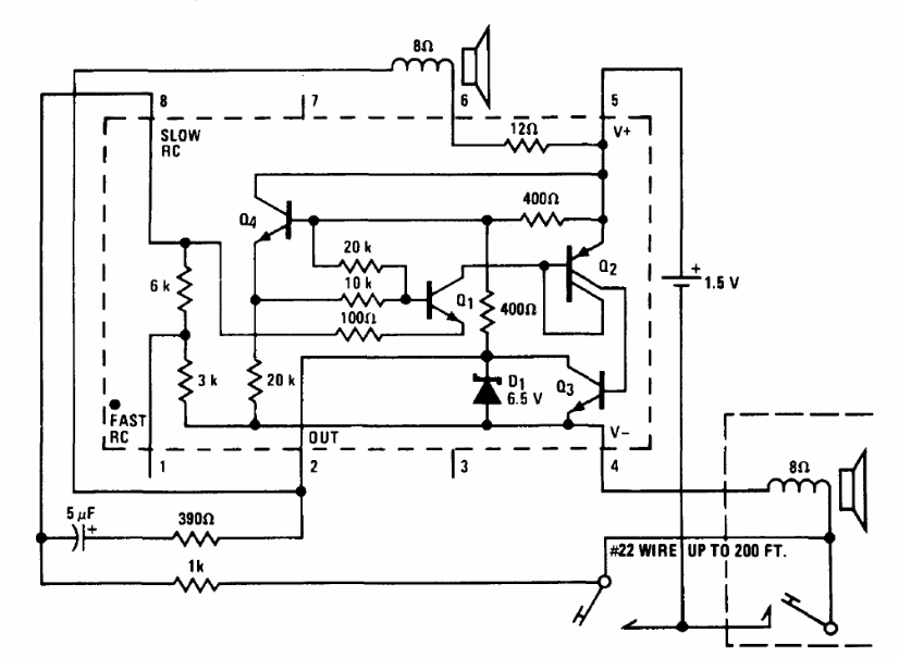 The short-wired circuit is suggested by National Semiconductor in documentation on the LM3909. The power is provided by a single battery and the frequency given by the capacitor that can be changed.
