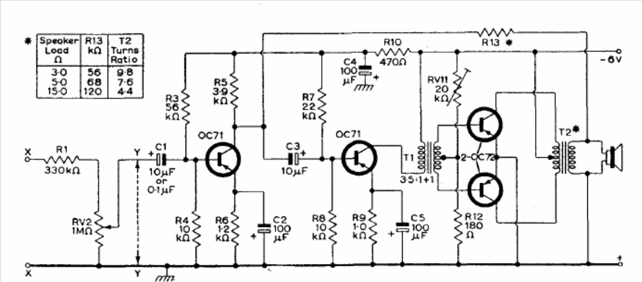 This circuit is from the 1960 Mullard transistor reference manual. The driver and output transformers are the critical elements of the design. This configuration was common for radio outputs stages at the time.