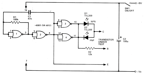 This type of circuit is traditional and has been published several times in different forms and variations. In this case, we found the circuit in a 1979 documentation. It can be powered by a battery.