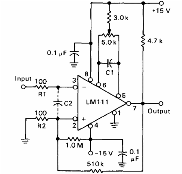 In the figure we have the way to obtain hysteresis of an operational amplifier LM111. The circuit is from Motorola's 1990 Linear Databook, but it can be implemented with more modern operational amplifiers and with other supply voltages.