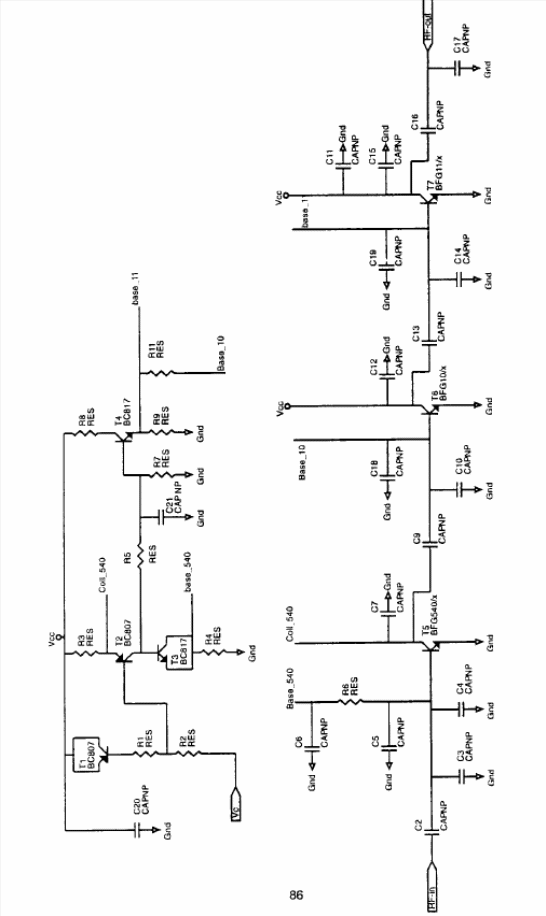 The original document is from Philips, but now available from NXP (www.nxp.com) which is the semiconductor company that acquired the rights to the Philips line. The circuit presented consists of an RF amplifier for the range from 1880 to 1920 MHz and can be powered with voltages from 3.3 to 3.6 V. The project is elaborated around the broadband transistors BFG540 / X and also transistors of RF BFG10 / X and BFG11 / X. The output power is 26 dBm, with a voltage of 3.6 V and 1900 MHz of frequency. The amplifier provides a gain of 25 dB with a power of 26 dBm. If greater gain is needed, the BFG505 transistor can be used additionally. With this, an additional 10 dB gain can be achieved without significant change in performance. As the project is designed around bipolar, there are no switching losses as occurs in projects that use GaAs FETs. The amplifier circuit has 3 stages, with a BFG540 operating in class A. In the technical document (Application Report) from NXP it is possible to find all the characteristics of the project and a suggested printed circuit board for the elaboration of a prototype.