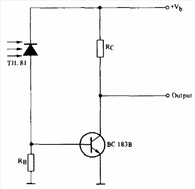 The circuit presented was suggested by Texas Instruments in an opto-electronics manual. The transistor can be the BC548 and the supply voltage depends on the application.