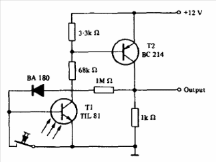 This configuration uses complementary transistors, one of which is the phototransistor. The other may be a BC558. The circuit is from a Texas Instruments opto-electronics manual. The circuit can be used as a shield for microcontrollers.