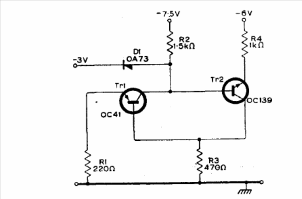 This circuit uses complementary transistors and was found in Mullard's transistor application manual from 1960. The circuit can be designed with modern transistors.