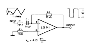 The LS141 integrated circuit is like to the 741, the circuit is from the 1982 SGS linear integrated circuit manual. The formula next to the diagram is used to calculate R2 and C1 according to the frequency.