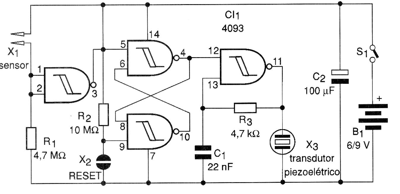 The sensor is, therefore, of the “touch” type that activates a transducer capable of producing a good alert sound. The complete circuit of this touch circuit is shown in figure 2.
