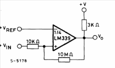 This is the basic configuration of many LM339 manuals, as a comparator with hysteresis. The font does not have to be symmetrical. The circuit is from the 1982 SGS Linear Integrated Circuits Manual.