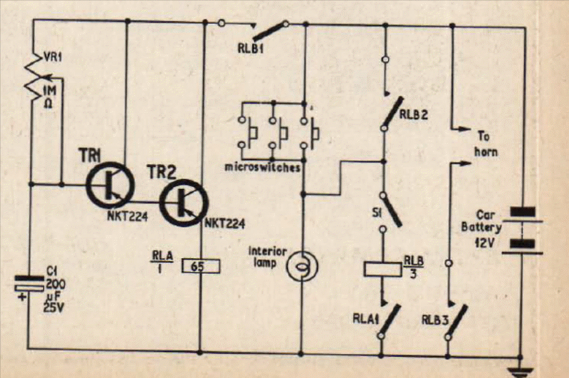 The transistors of this circuit found in a 1965 magazine can be the BC558 and the sensitive 12 V x 50 mA relay. The other components are common.