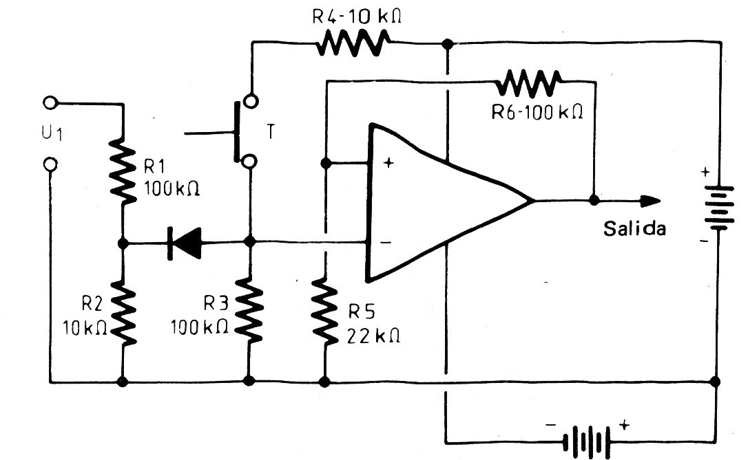 This circuit trips when a negative pulse is applied to its input or when the voltage drops below a value determined by the input components. The circuit is reset in a T-shape and applies to virtually any operating system. We found this circuit in an 80's documentation.