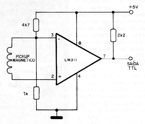 This circuit, suggested by Philips Components, uses as a base a voltage comparator of the type LM311 to provide a signal with characteristics compatible with the TTL logic. The circuit is quite simple, and the characteristics of the transducer depend on the type of signal that must be detected, as it is a function of the application you have in mind. The power supply does not have to be symmetrical and the resistors are 1/8 W.