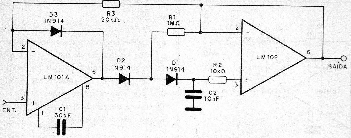 Two National Semiconductor operatives are used on this circuit indicated for instrumentation applications. The diodes and the operational ones have equivalents, and the power supply must be symmetrical.
