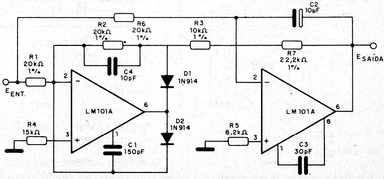 This circuit used in instrumentation is suggested by National Semiconductor, now Texas Instruments and makes use of two LM101A. Operational ones can be replaced by equivalents and the power supply must be symmetrical.