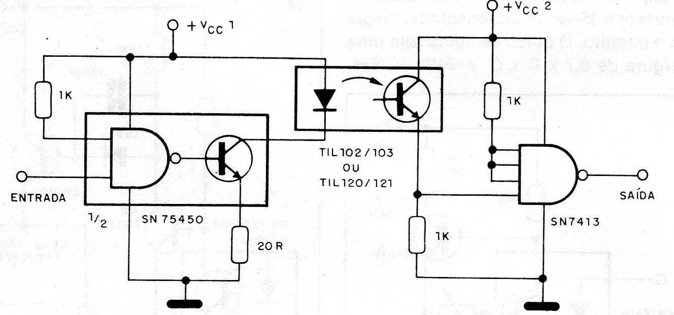 The circuit shown in the figure is suggested by Texas Instruments and allows data transmission on TTL devices working as a shield. The LED needs at least 20 mA for the drive, which is well below the maximum limits of the existing transistor in the 75450.