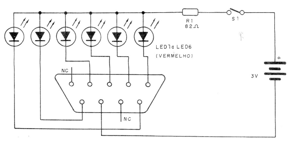 This circuit is from an old publication, from 1992, being indicated to test the old joysticks of the Master game system of the time. The circuit indicates operation through LEDs and an appropriate connector is used.