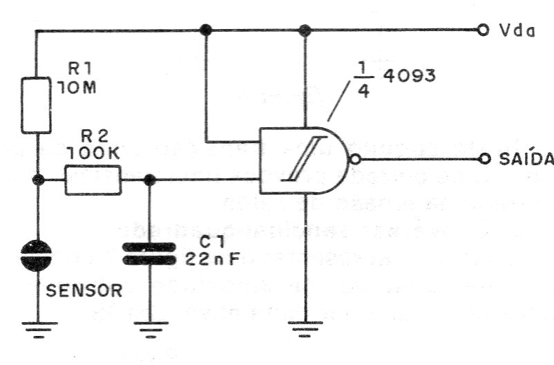 In the figure we have a very sensitive touch switch circuit. A touch of the sensor causes the output to be put to the HI level for a time that depends on C1. For reverse operation we can change places R1 and the sensor, inverting them.