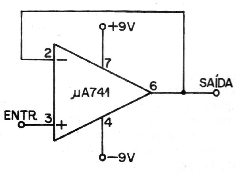 This is the traditional voltage follower configuration with the 741 operational amplifier. The circuit is from 1976 documentation and the power supply must be symmetrical from 6 to 15 V.