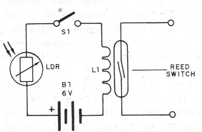 This sensitive circuit has a homemade reed relay. Approximately 100 turns of fine wire (AWG 32, for example) are wound in a common reed switch. The controlled current depends on the reed-switch. The power comes from two ordinary batteries.