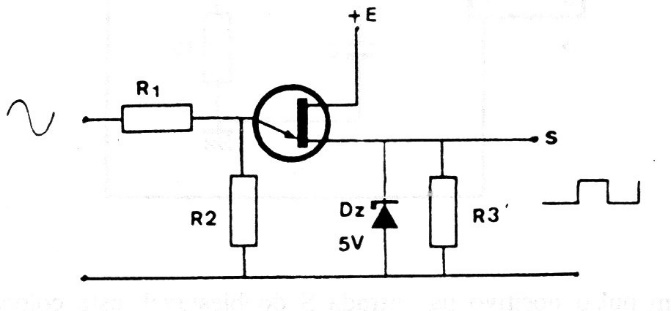 This circuit produces rectangular signals from a sinusoidal input. The circuit uses a unijunction transistor and can be supplied with voltages from 5 V according to the input voltage. The output is fixed at 5 V by the zener which allows the use of the circuit in an input shield for microcontrollers.