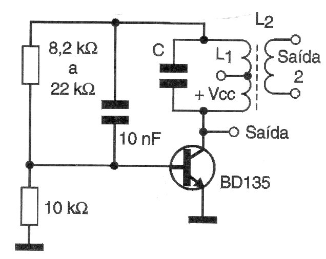 The good signal of this circuit depends on L1 and C1. For 80 turns of wire 28 with a central socket on a ferrite rod and a capacitor of 470 pF for C the frequency will be around 1 MHz. L2 consists of 10 to 20 turns of wire 28 on L1 and the transistor must be equipped with a heatsink. of heat. The supply can be done with voltages from 3 to 12 V.