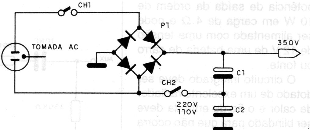 This simple voltage doubler provides a continuous voltage at its output that is twice the peak value of the alternating input voltage. The maximum current will depend on the diodes and capacitors that can have values between 10 and 100 uF.