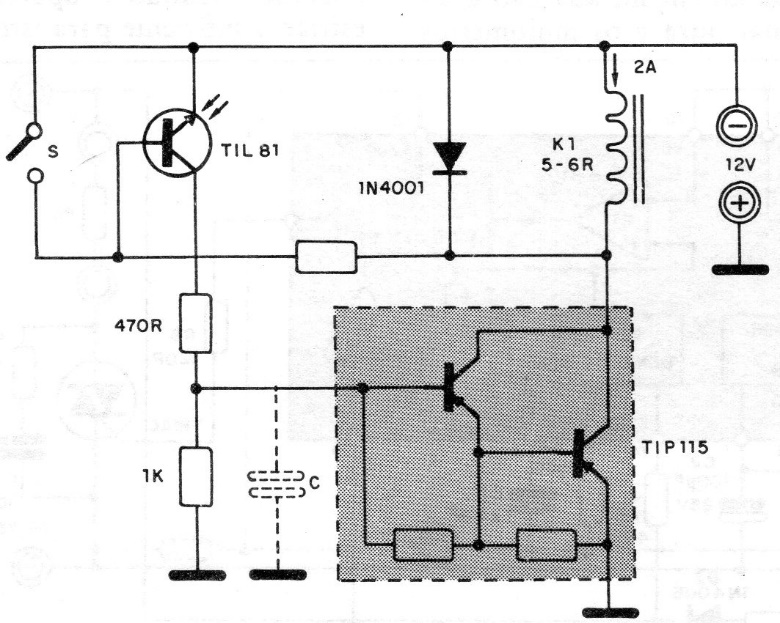 This circuit, from Texas Instruments documentation, fires a relay when light strikes the phototransistor. Any phototransistor can be used, and the power can be supplied with 6 or 12 V depending on the relay. The 1 k resistor can be changed to modify the sensitivity.