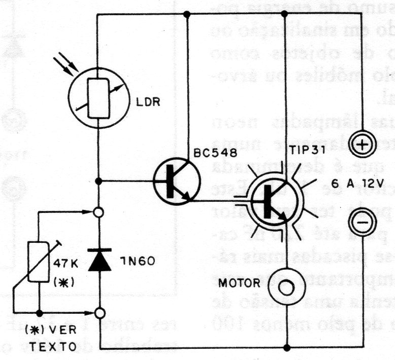 This simple circuit can be used in a robot that follows the light directly feeding a small motor. Two similar circuits must be assembled to control the two motors on a moving base. We suggest using an Arduino base that can be easily purchased nowadays.