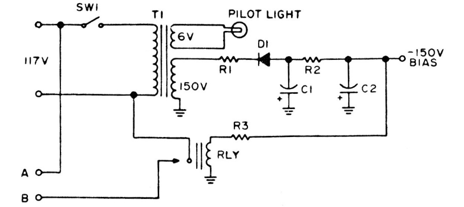 The purpose of this circuit is to cut off the high voltage when the bias voltage fails. The circuit is from a 1975 documentation and can be adapted for other purposes.