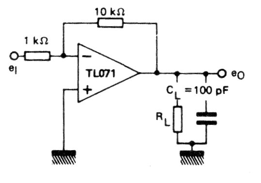 This is a traditional inverter amplifier configuration with voltage gain 10. The operational amplifier has FET at the input, but the configuration is valid for other operational ones. The power supply must be symmetrical with voltage according to the operational used.