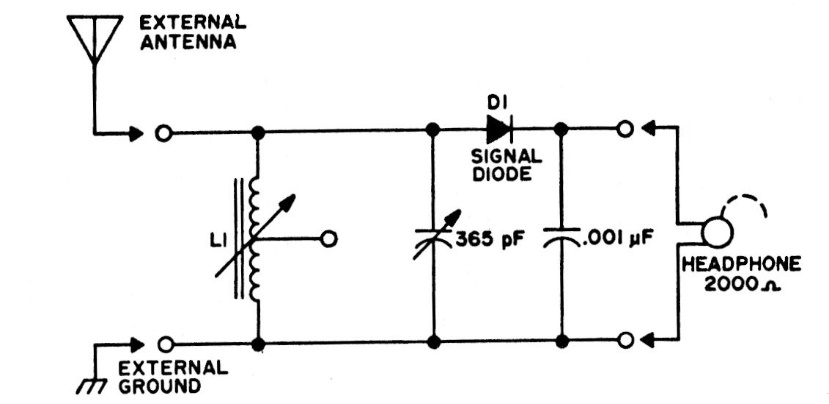 This crystal or galena radio is one of the many versions available on this website. This is from a documentation from the 70s. The coil is formed by 50 + 50 turns of wire 28 in a ferrite rod.