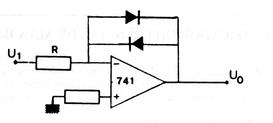 This configuration, already presented in other points of this section and website, is of a logarithmic amplifier, whose response is determined by the action of the diodes. The circuit requires a symmetrical source and can be implemented with other operational amplifiers.
