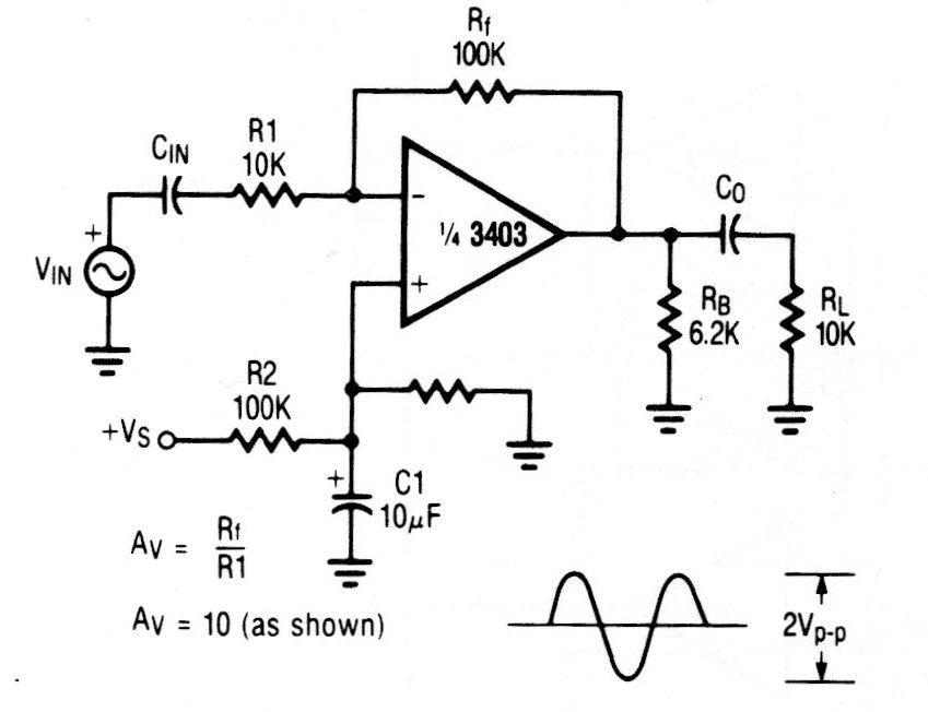 The 3403 operational amplifier is not common today, but the configuration can be implemented with more modern operational. The source must be symmetrical, and the circuit is from an 80's manual.