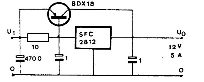 The integrated circuit used in this regulator is from the 1980s, so it is difficult to obtain today. The transistor must be equipped with a heat sink and the input voltage must be at least 3 V greater than that desired at the output.