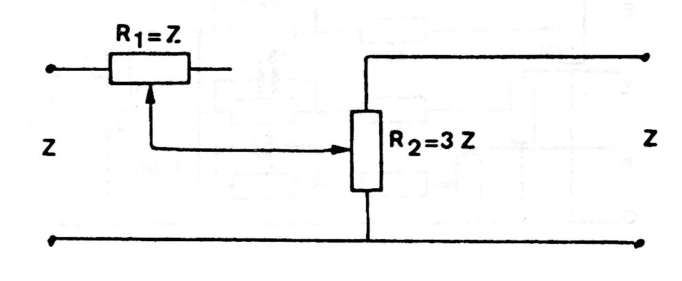 This power control for powers up to about 10 W uses wire potentiometers in an arrangement that allows to maintain the impedance. The circuit is from old European documentation.